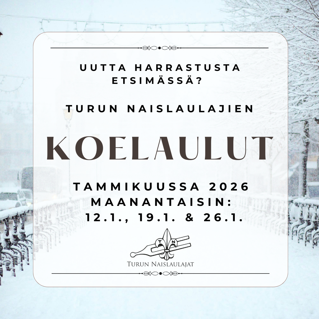 Järjestämme koelaulut elokuussa 2025 maanantaisin 18.8., 25.8. ja 1.9. klo 18 alkaen osoitteessa Turun NNKY, Vähä Hämeenkatu 12.