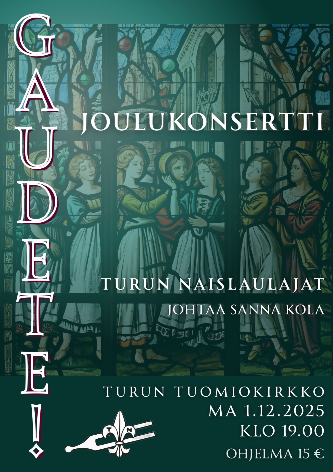 Turun Naislaulajien ja Lauluyhtye Oktäänin yhteinen joulukonsertti sunnuntaina 15.12.2024 klo 15.00 Turun ev.lut seurakuntien juhlasalissa osoitteessa Eerikinkatu 3, 20100 Turku