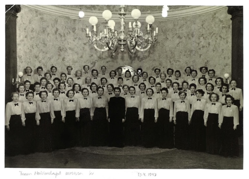 Lempi Ahlström oli mukana perustamassa Suomen Naiskuoroliittoa syksyllä 1945. Kuorolla on ollut oma merkki jo vuodesta 1947 alkaen: äänirauta, jonka päällä on Auran lilja, jossa kirjaimet T ja N. Merkki on luultavasti Lempi Ahlströmin suunnittelema. Seuraavana vuonna vihittiin käyttöön kuoron lippu. Sodanjälkeisinä pulavuosina silkkikankaan saaminen ei ollut helppoa; apu löytyi lahden takaa göteborgilaiselta Lodola-kuorolta. Ensimmäinen ulkomaanmatka vuonna 1949 suuntautuikin tämän kuoron vieraaksi, ja toinen Ruotsin ja Tanskan kiertue toteutui jo kahden ja puolen vuoden kuluttua, sillä kuoro oli kovasti niittänyt mainetta.